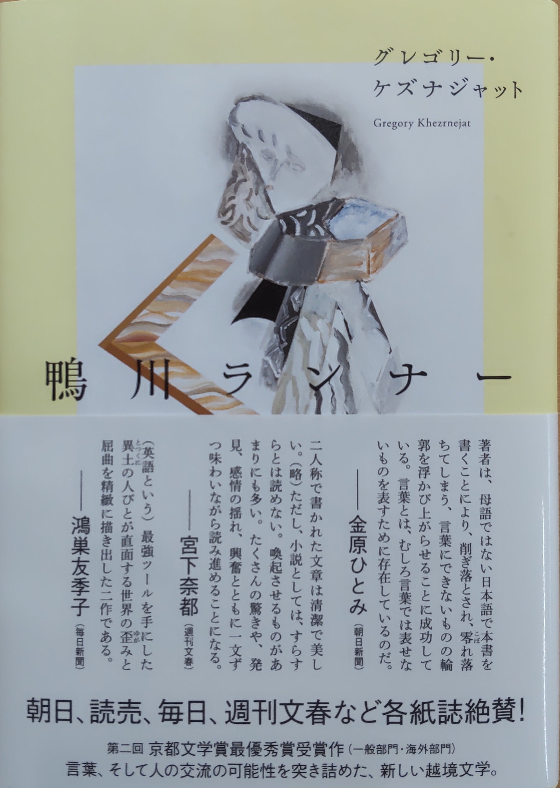「鴨川ランナー」……外国から京都に仕事に来た青年の日常や、周囲の扱い方に対する違和感、その中で生きる不安や葛藤などを、「きみ」という二人称を用いた独特の文章で内省的に描く。京都文学賞受賞作。