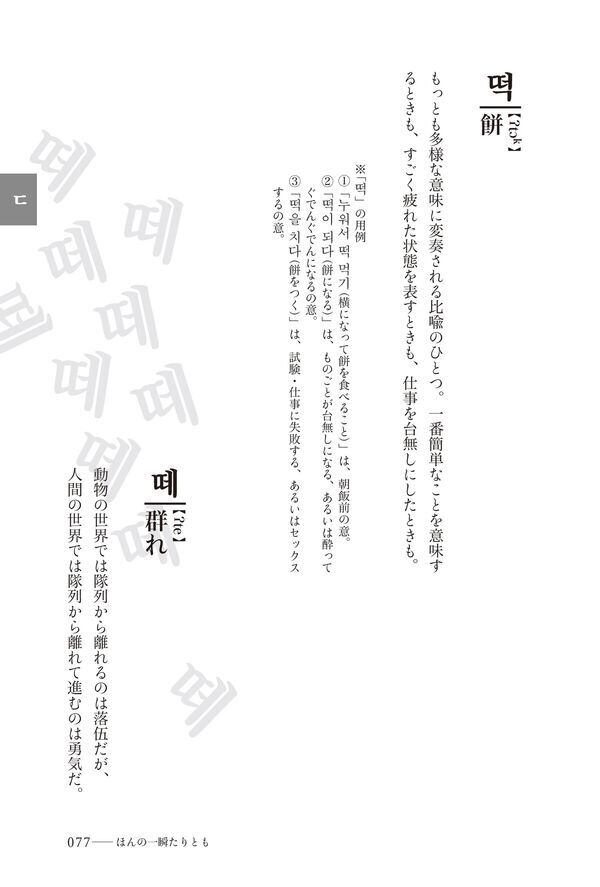 つまり、私の『一文字辞典』は読者が参加することによってはじめて完全な辞典となる。私と未知のあなた、私たち二人でこの本を完成させるのだ」